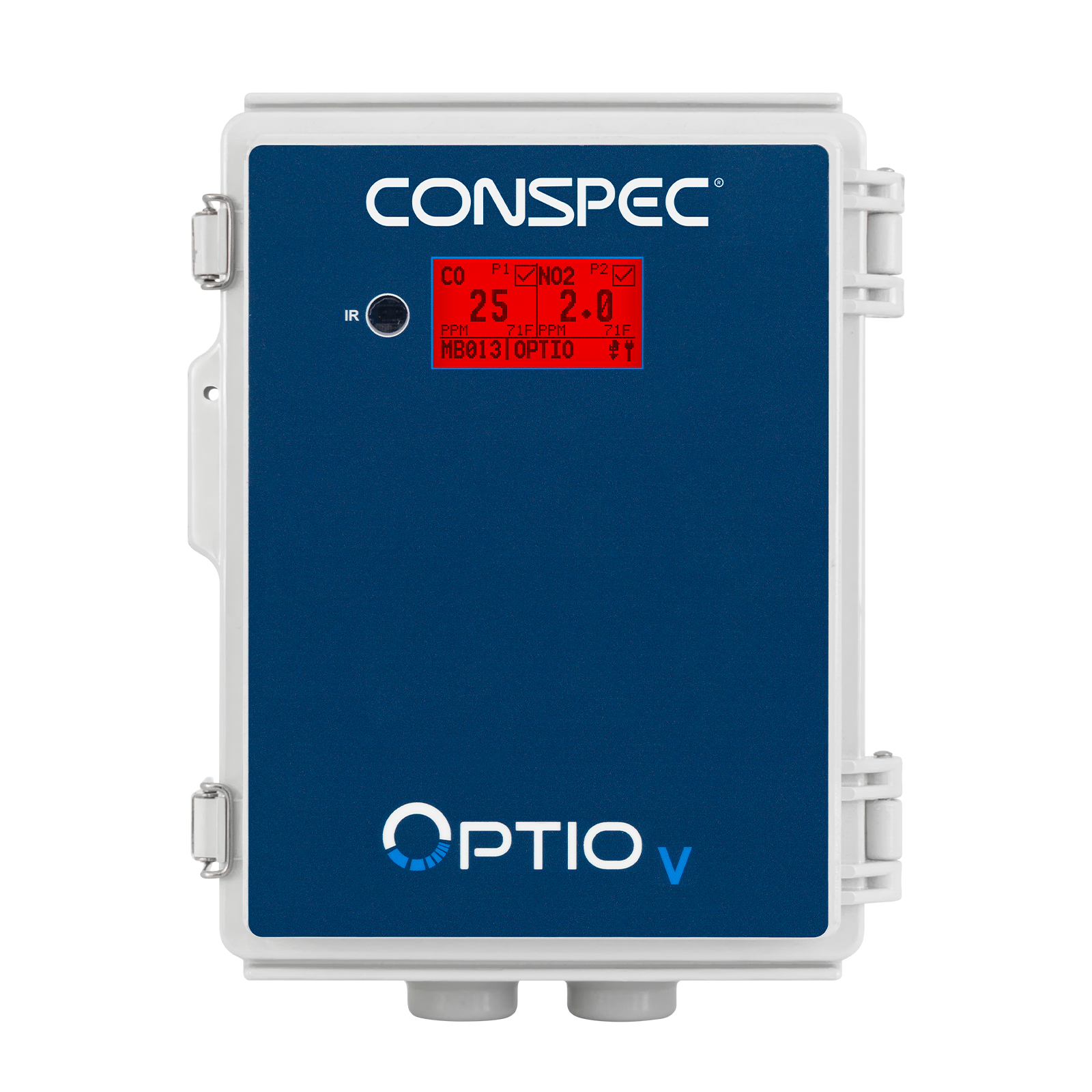 The Optio V Carbon Monoxide (CO) & Nitrogen Dioxide (NO2) detector is intended for ventilation control in enclosed areas. The Optio V is a stand-alone unit and can be wired together with multiple units to create a system.